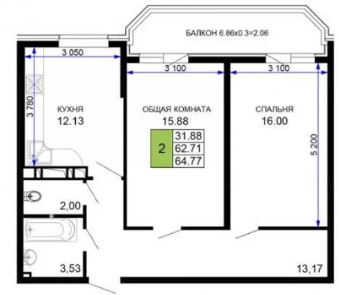 Продается 2-х комн. новостройка, 64.77 кв.м., 12/19 эт