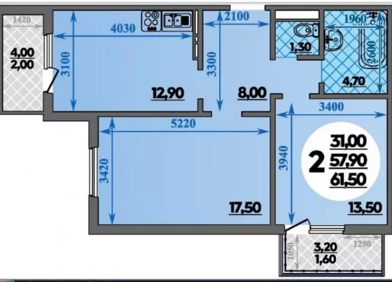 Продается 2-х комн. новостройка, 61.5 кв.м., 3/18 эт