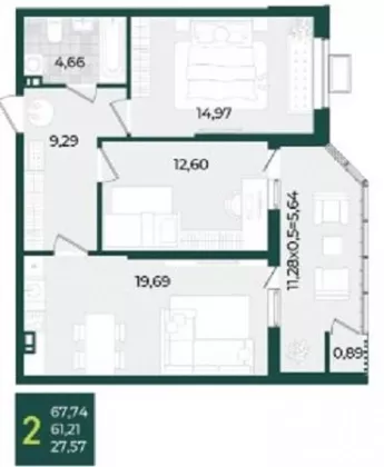 Продается 2-х комн. новостройка, 67.74 кв.м., 19/21 эт