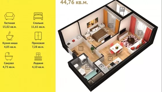 Продается 2-х комн. новостройка, 44.76 кв.м., 7/17 эт