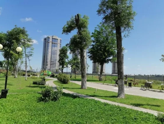 Зеленая парковая зона с ландшафтным дизайном- бульвар им.Адмирала Фёдора Ушакова, вся территория оборудована удобными лавочками, велодорожками и фонтаном.