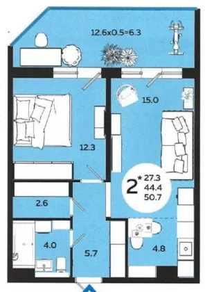 Продается 2-х комн. новостройка, 50.7 кв.м., 5/24 эт