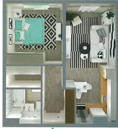 Удобная планировка с большой кухней-гостиной и просторной комнатой, в квартире есть гардеробная, вдоль всей квартиры лоджия 12, м.кв. прекрасный вид на город.