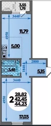 Продается 2-х комн. новостройка, 44.23 кв.м., 11/16 эт