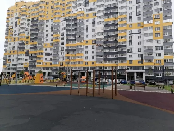 Большое расстояние между домами, много места для парковки автомобилей, также есть многоуровневая стоянка. Двор с красочными детскими и спортивными площадками , скамейками для отдыха и зелеными кустарниками и деревьями.