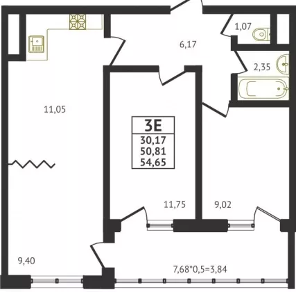 Продается 3-х комн. новостройка, 54.65 кв.м., 15/17 эт