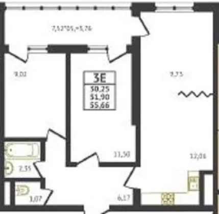 Продается 3-х комн. новостройка, 56 кв.м., 5/17 эт