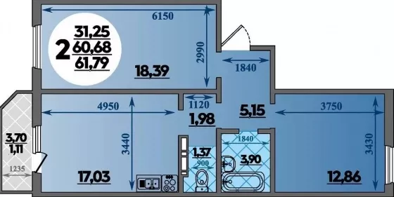 Продается 2-х комн. новостройка, 61.79 кв.м., 4/8 эт