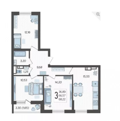 Продается 3-х комн. новостройка, 68 кв.м., 10/16 эт