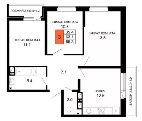 | Площадь, кв.м. | 65.3 |