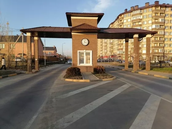 Прекрасная придомовая территория, красочно оформлены детские и спортивные площадки , зоны отдыха для детей и взрослых. Открыты магазины и объекты бытового обслуживания, первые этажи дома отведены под коммерцию, поэтому у вас всё необходимое в доме есть. Везде уложена красивая тротуарная плитка, всё чисто и аккуратно. При въезде в жилищный комплекс арка с часами, а чуть правее зеленая аллея со скамейками для отдыха, очень красиво. Чистота и порядок!!!