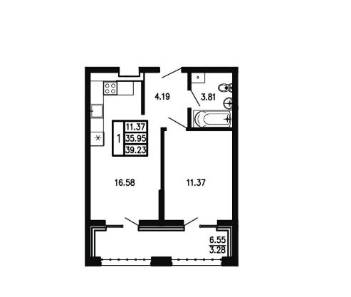 Продается однокомнатная новостройка, 39 кв.м., 5/8 эт