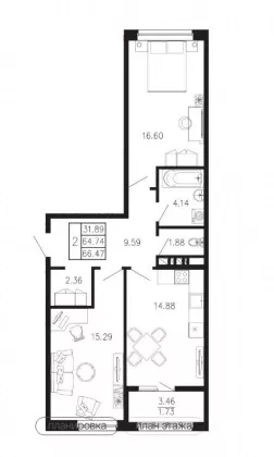 Продается 2-х комн. новостройка, 66 кв.м., 5/6 эт