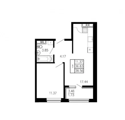 Продается однокомнатная новостройка, 38.56 кв.м., 6/8 эт