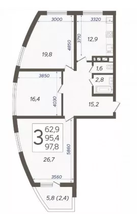 Продается 3-х комн. новостройка, 97.8 кв.м., 12/24 эт