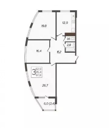 Продается 3-х комн. новостройка, 97.8 кв.м., 9/24 эт