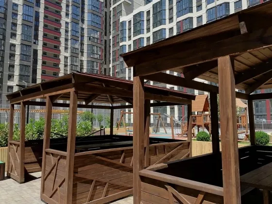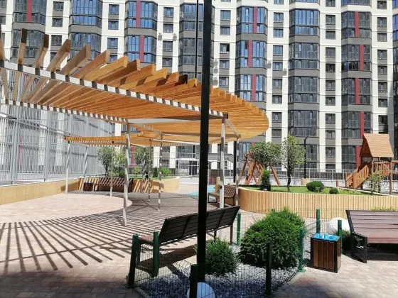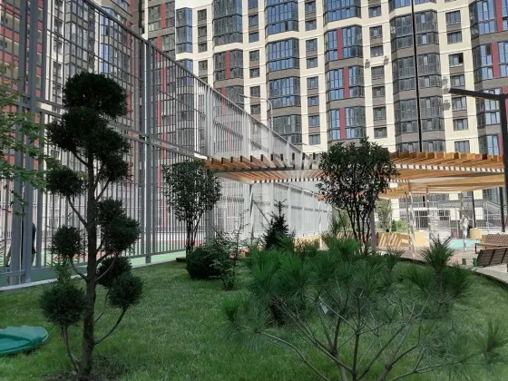 Во дворе всем понравившийся стилобат: внизу парковочные места, а в верху детские и спортивные площадки, зоны барбекю, много зелени. Уютно и красиво, приезжайте убедитесь сами!!