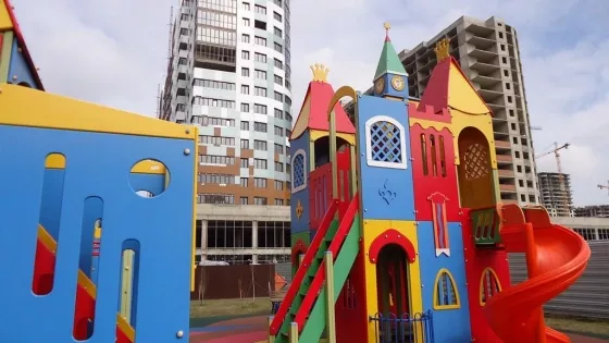 Детские и спортивные площадки, лавочки для отдыха, зеленная аллея для прогулок.