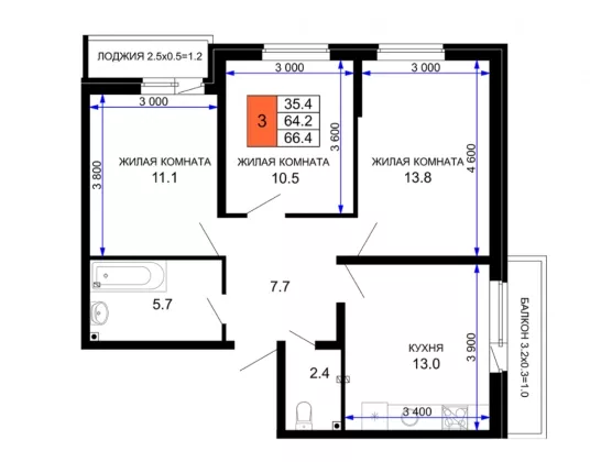 Продается 3-х комн. новостройка, 65 кв.м., 8/16 эт