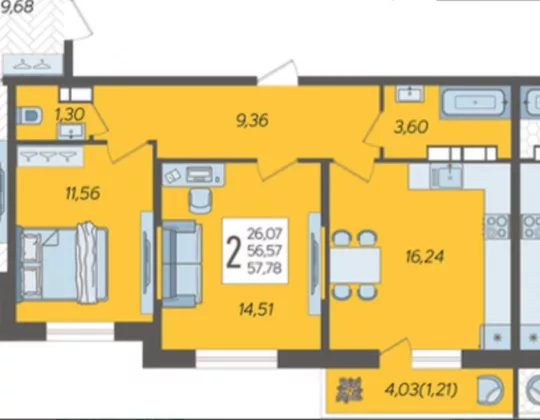 Продается 2-х комн. новостройка, 58 кв.м., 10/16 эт