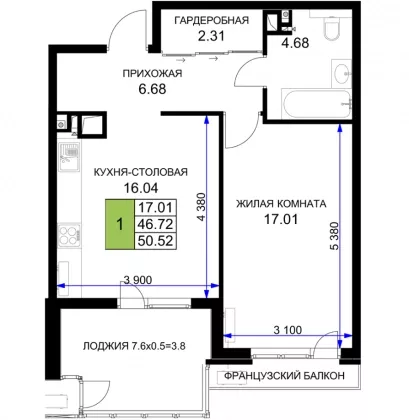 | Жилая площадь | 17.01 |