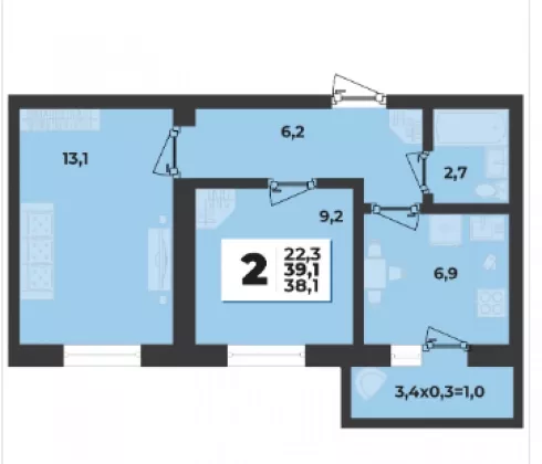 Продается 2-х комн. новостройка, 38.1 кв.м., 3/5 эт