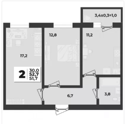 | Площадь кухни, кв.м. | 17.2 |