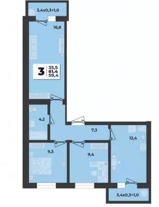 Продается 3-х комн. новостройка, 61.4 кв.м., 5/5 эт