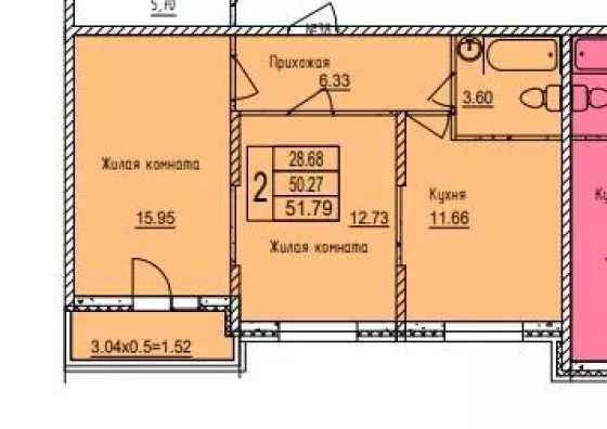 Продается 2-х комн. новостройка, 51 кв.м., 7/16 эт