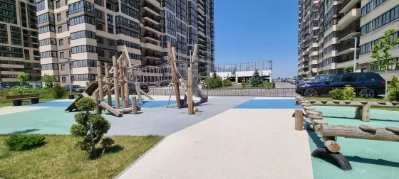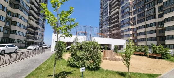 Современные школы и детские сады. Во дворе поющий фонтан, зоны отдыха и спорта.