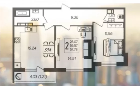 Продается 2-х комн. новостройка, 58 кв.м., 10/16 эт