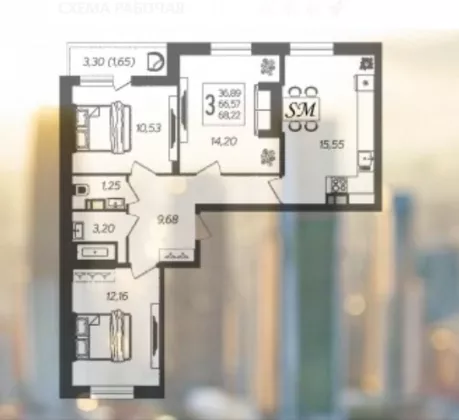 Продается 3-х комн. новостройка, 68 кв.м., 8/16 эт