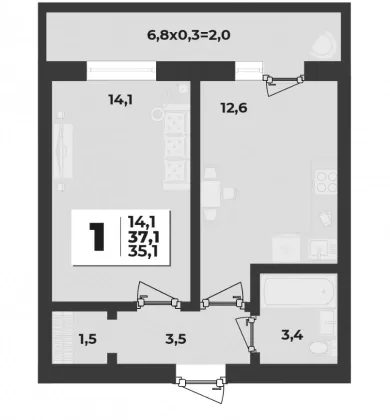 Продается однокомнатная новостройка, 37.1 кв.м., 2/5 эт