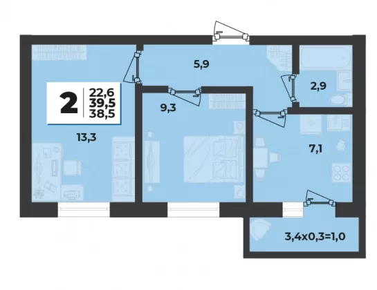 Продается 2-х комн. новостройка, 39.5 кв.м., 3/5 эт