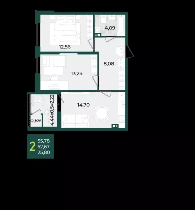 Продается 2-х комн. новостройка, 55.64 кв.м., 9/16 эт