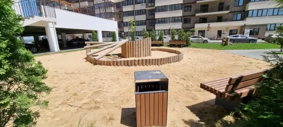 Современные школы и детские сады. Во дворе поющий фонтан, зоны отдыха и спорта.
