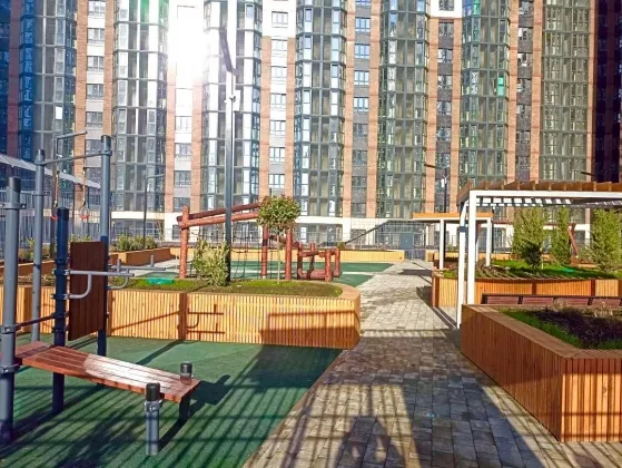 Современный комплекс со своим парком, дизайнерские входные группы, просторная придомовая территория с арт объектами, зонами отдыха для взрослых и детей, площадки для занятия спортом. На первом этаже коммерческие помещения, что позволит жильцам не выходя из комплекса совершать покупки не выходя из комплекса.