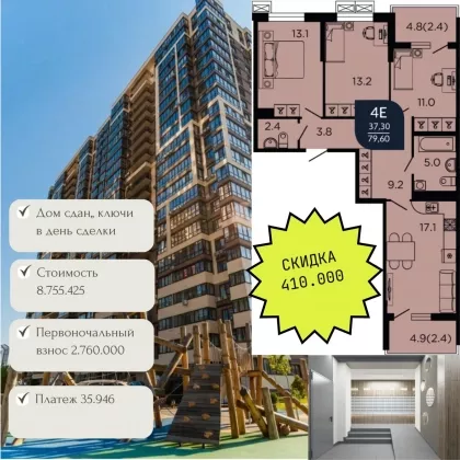 Продается 3-х комн. новостройка, 79.6 кв.м., 10/19 эт