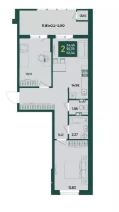 Продается 2-х комн. новостройка, 62 кв.м., 5/18 эт