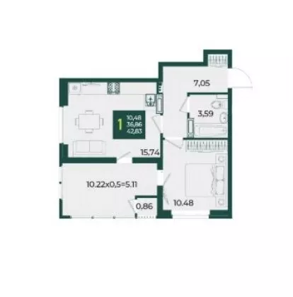 Продается однокомнатная новостройка, 42.83 кв.м., 12/18 эт