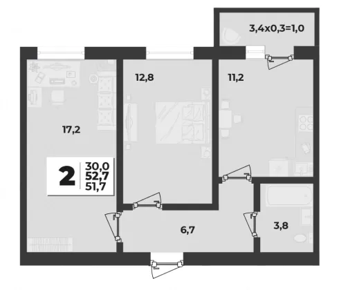 Продается 2-х комн. новостройка, 52.7 кв.м., 3/5 эт