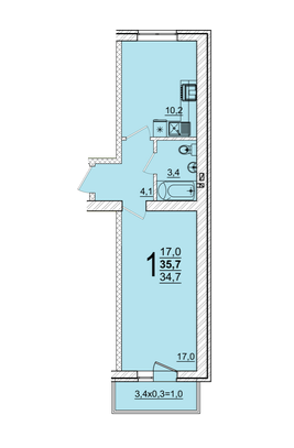 Продается однокомнатная новостройка, 35.7 кв.м., 3/5 эт