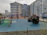 Красивые дома, в ночное время с цветными подсветками. Чистый двор без машин, так как парковка вынесена за территорию двора (перед домами сделана огромная парковка для автомобилей).