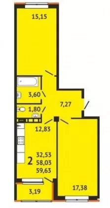 Продается 2-х комн. новостройка, 59.5 кв.м., 5/5 эт