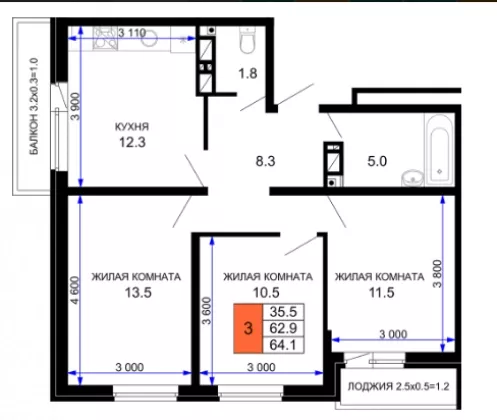 | Площадь, кв.м. | 64.1 |