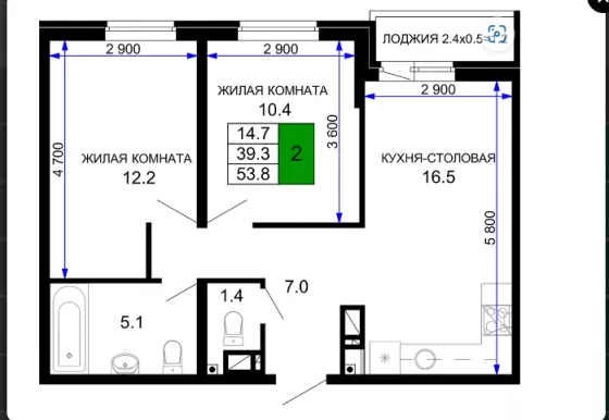 Продается 2-х комн. новостройка, 66 кв.м., 6/16 эт
