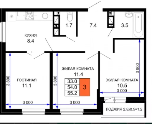 | Площадь, кв.м. | 55 |