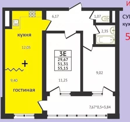 Продается 2-х комн. новостройка, 57 кв.м., 12/17 эт