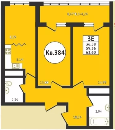 Продается 3-х комн. новостройка, 60 кв.м., 12/17 эт