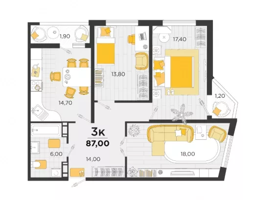 Продается 3-х комн. новостройка, 87 кв.м., 9/24 эт